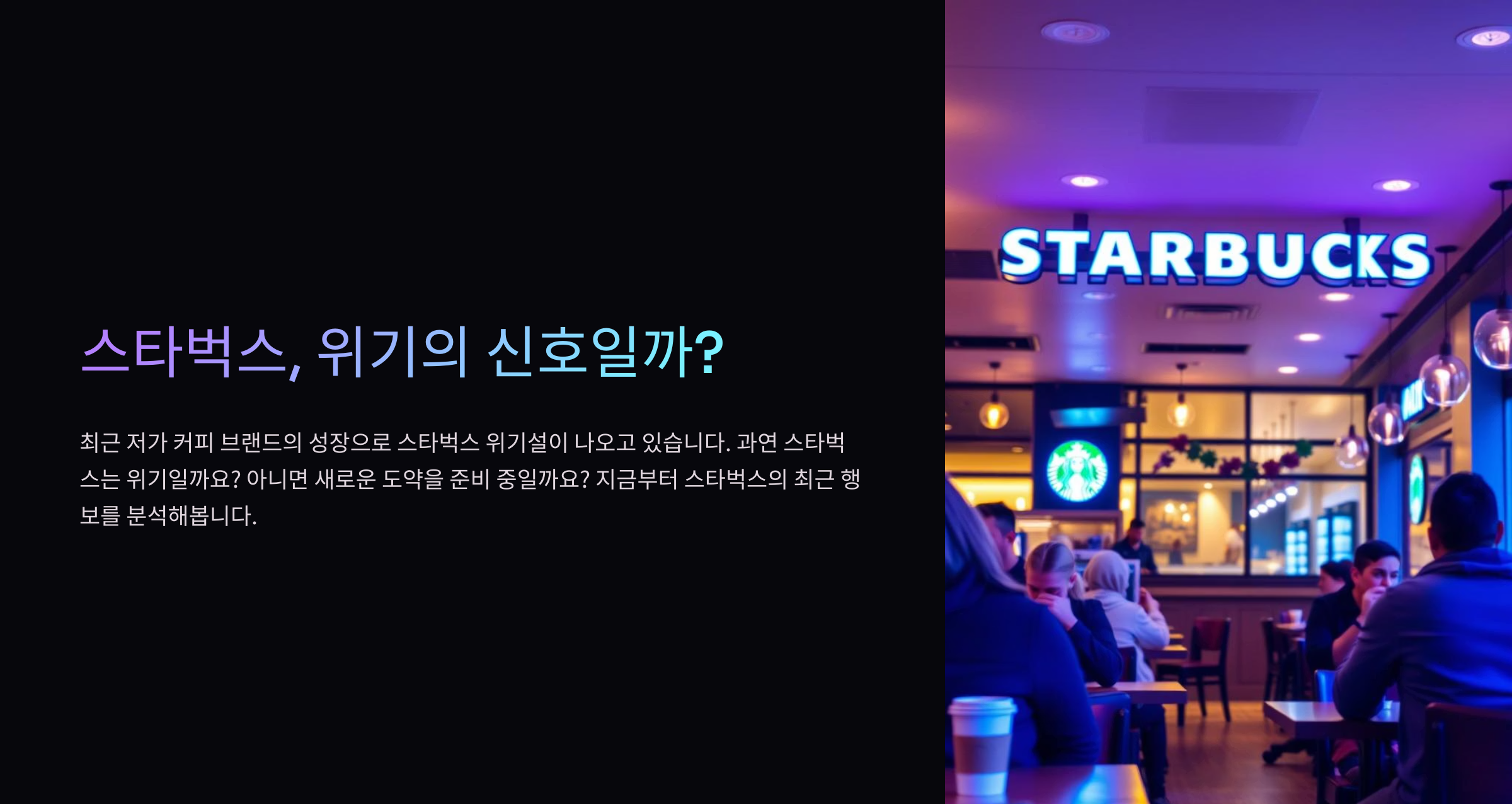 결론적으로 제 생각엔 스타벅스가 단순히 '위기'라기보다는 치열한 시장 환경에 대응하기 위해 적극적으로 '변화'를 시도하고 있다고 보는 게 맞는 것 같아요. 물론 그 과정에서 일부 '무리수'처럼 보이는 시도도 있을 수 있지만, 결국은 살아남기 위한 몸부림이겠죠?