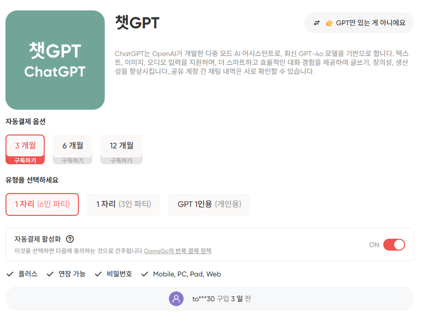 * 예를 들어 Chat GPT Plus 구독으로 설명하면,